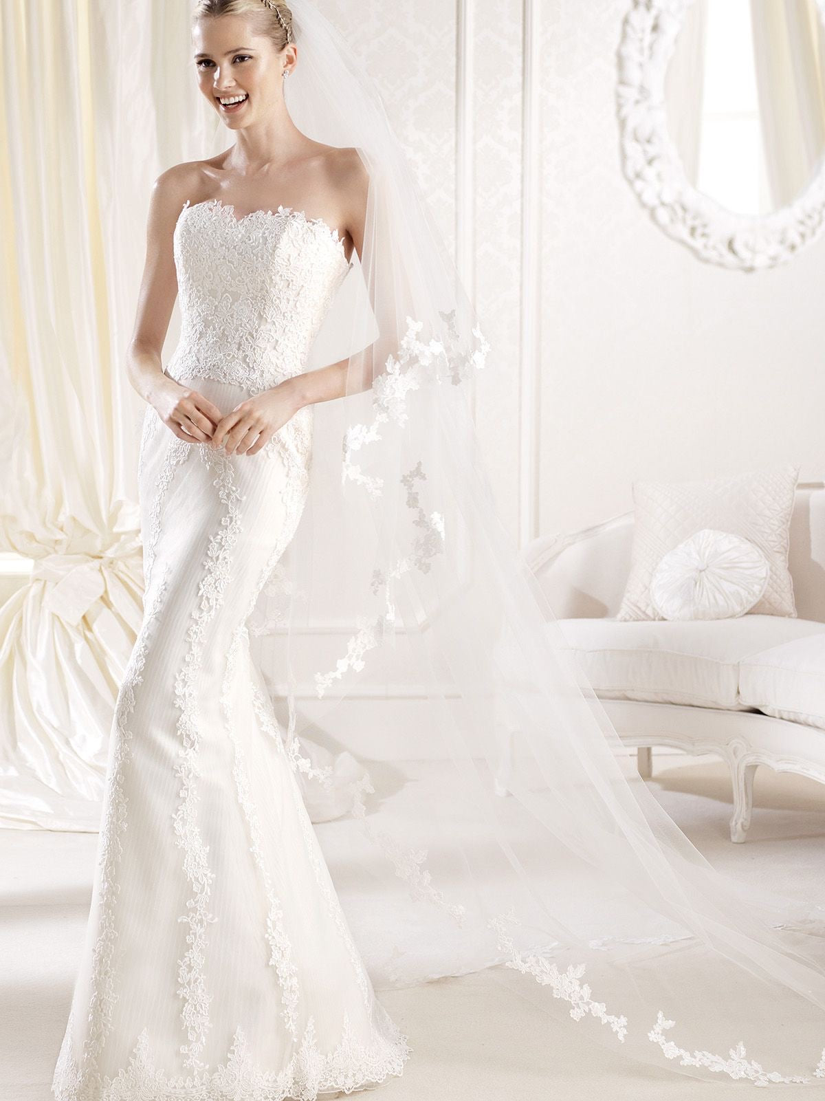 The Idalie by La Sposa is an elegant two-piece fit-and-flare wedding gown crafted in delicate lace. The base dress sculpts the figure beautifully, while a sheer halter-neck mesh overlay adds a modern, couture-inspired touch. Side button detailing, flowing lace godets, and a dramatic long train create movement and romance with every step. Finished in a soft off-white, this gown is timeless, refined, and effortlessly sophisticated